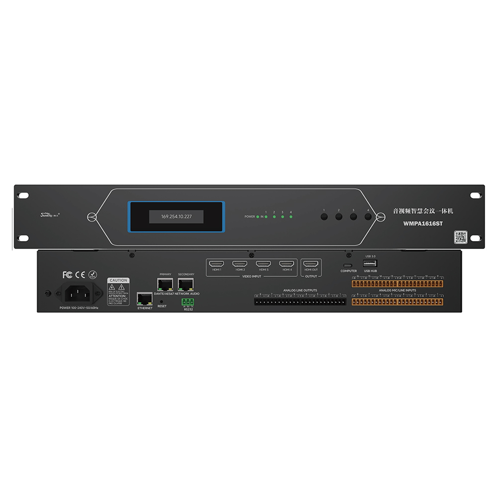 WMPA1616ST音視頻智慧會(huì)議一體機(jī)支持16路模擬輸入和8路模擬輸出,確保高品質(zhì)音頻傳輸和處理;還包括4x1HDMI+1路Type-C無(wú)縫視頻切換,提供清晰流暢的視頻畫(huà)面;同時(shí)支持AES67數(shù)字協(xié)議,可做高效和低延時(shí)的數(shù)字傳輸