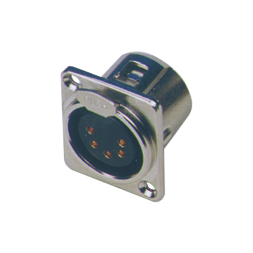 五芯卡儂母插座外殼采用高強(qiáng)度鋅合金材質(zhì)堅(jiān)固耐用, 鍍銀觸點(diǎn)保證了信號(hào)穩(wěn)定傳輸。標(biāo)準(zhǔn)的D型法蘭通用尺寸適合工程安裝。
