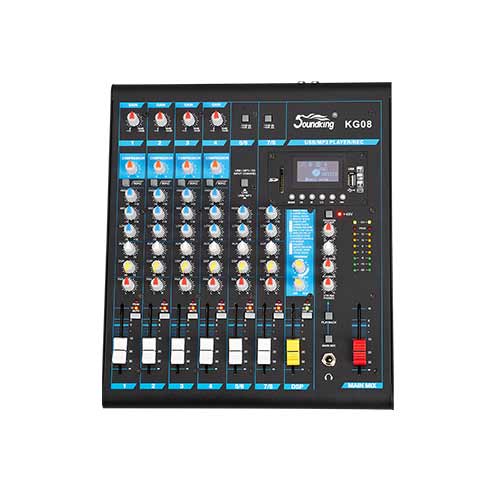 1. KG系列調(diào)音臺(tái)整體緊奏輕巧,MIC輸入通道新增加了麥克風(fēng)壓縮技術(shù),可以保持麥克風(fēng)的聲音清脆悅耳;