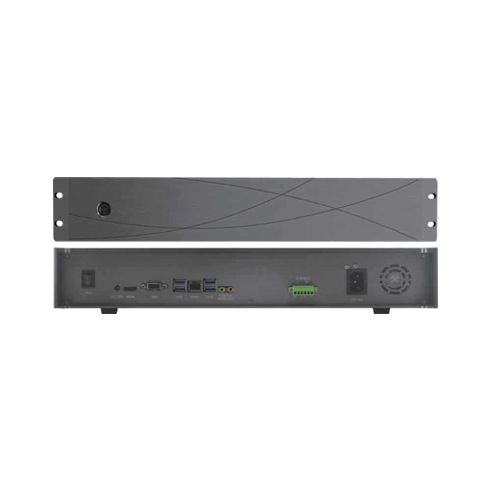 采用全鋁合金拉絲工藝,標(biāo)準(zhǔn)19寸機柜式安裝設(shè)計,外型沉穩(wěn)大氣、細節(jié)精致機身卻配備高端配置,主要裝載無紙化會議投影軟件,配合無紙化其他設(shè)備實現(xiàn)參會人員可自行將講稿內(nèi)容投影到會議室大屏幕,或者有秘書終端管理后再投影;會議秘書還可根據(jù)本單位的要求選擇宣傳片、音樂進行投影播放。