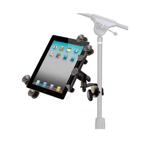 多適用平板電腦支架,用于固定大部分尺寸型號的平板電腦,支架可以連接麥克風(fēng)支架,用于表演,演講等場合,操作方便。