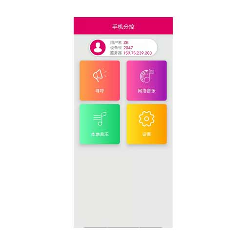 ◆支持安卓操作系統(tǒng),可實(shí)現(xiàn)遠(yuǎn)程監(jiān)控與控制;◆支持對(duì)終端發(fā)布LED顯示屏文字信息;◆支持歌曲上傳服務(wù)器功能。◆可實(shí)現(xiàn)對(duì)分區(qū)控制播放歌曲與調(diào)節(jié)音量大小。;◆支持選區(qū)或全區(qū)尋呼功能。◆支持中\(zhòng)英文。